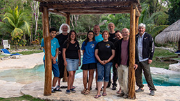 Innerhalb unserer zwei Tauchwochen legten wir zwei geplante Ruhetage ein, an denen wir die Maya-Ruinenstätten in Tulum und Cobá besuchten. Viel Spaß machte eine Art Canoeing in einem Maya-Kanal. Sitzend in einer Schwimmweste ließen wir uns eine gute halbe Stunde mit der Strömung treiben, bei den Temperaturen um 35 Grad sehr angenehm. Ein Erlebnis war auch der Besuch einer riesigen Markthalle, wo es von der Avocado bis zur Chili-Schokolade alles gab. Der Höhepunkt, im wörtlichen Sinne, war dann mit der Besteigung der Stufenpyramide in Cobá erreicht, für Stephan, Hannes und mich eine schweißtreibende Erstbesteigung mit tollem Ausblick.