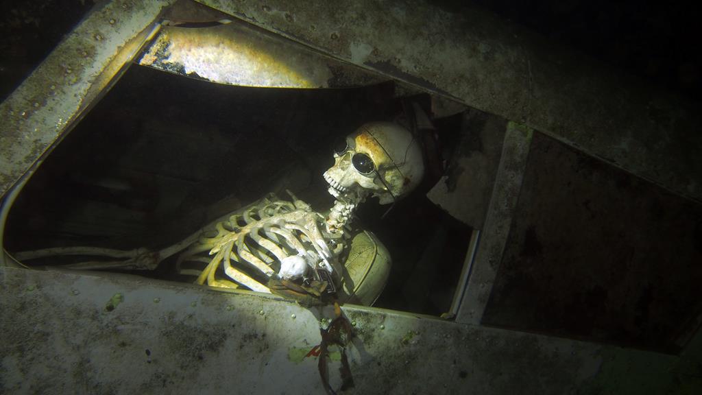 zu tief – war nur ein Stofftier ;-)) Andreaskreuz, Glocke, Wrack.
